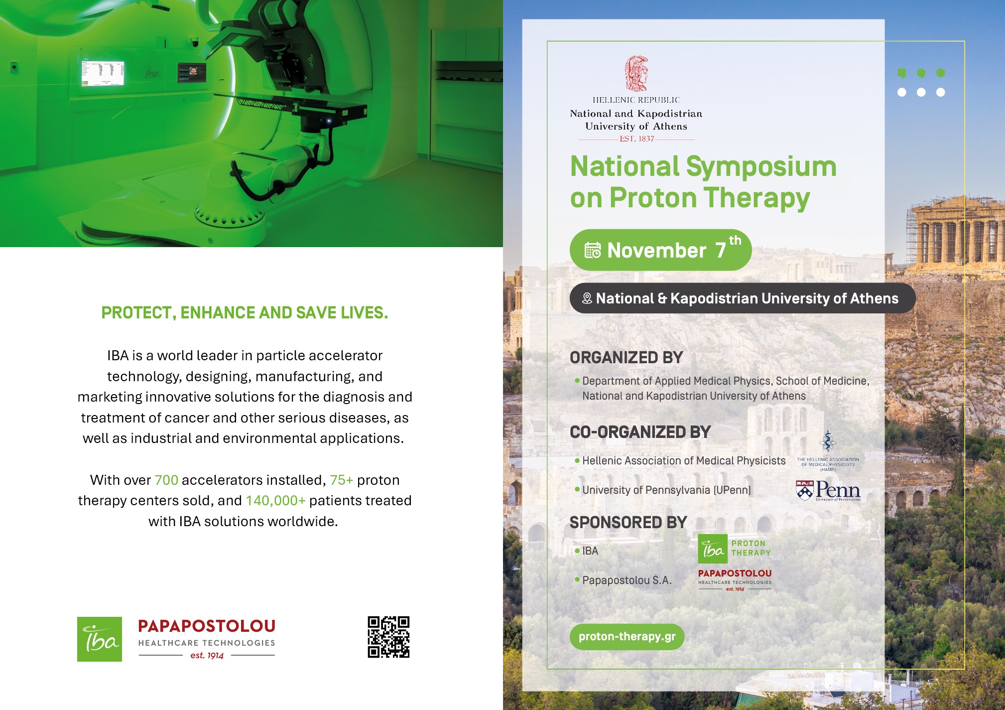 Το Εργαστήριο Εφαρμοσμένης Ιατρικής Φυσικής μαζί με το Εργαστήριο Ακτινοθεραπευτικής Ογκολογίας τηε Ιατρικής Σχολής του ΕΚΠΑ και με συνδιοργανωτές την Ένωση Ελλήνων Φυσικών και το University of Pensylvania, το 1ο Εθνικό Συμπόσιο για την Ακτινοθεραπεία με Πρωτόνια στην Ελλάδα.